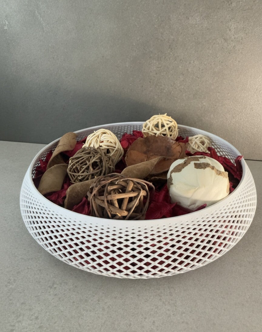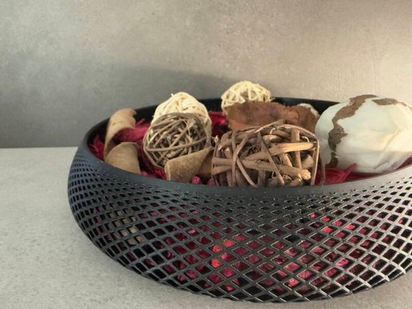 Realizzato con una struttura a rete intrecciata che gli conferisce un aspetto minimal adatto soprattutto negli ambienti moderni, può essere usato anche come uno svuota tasche.
