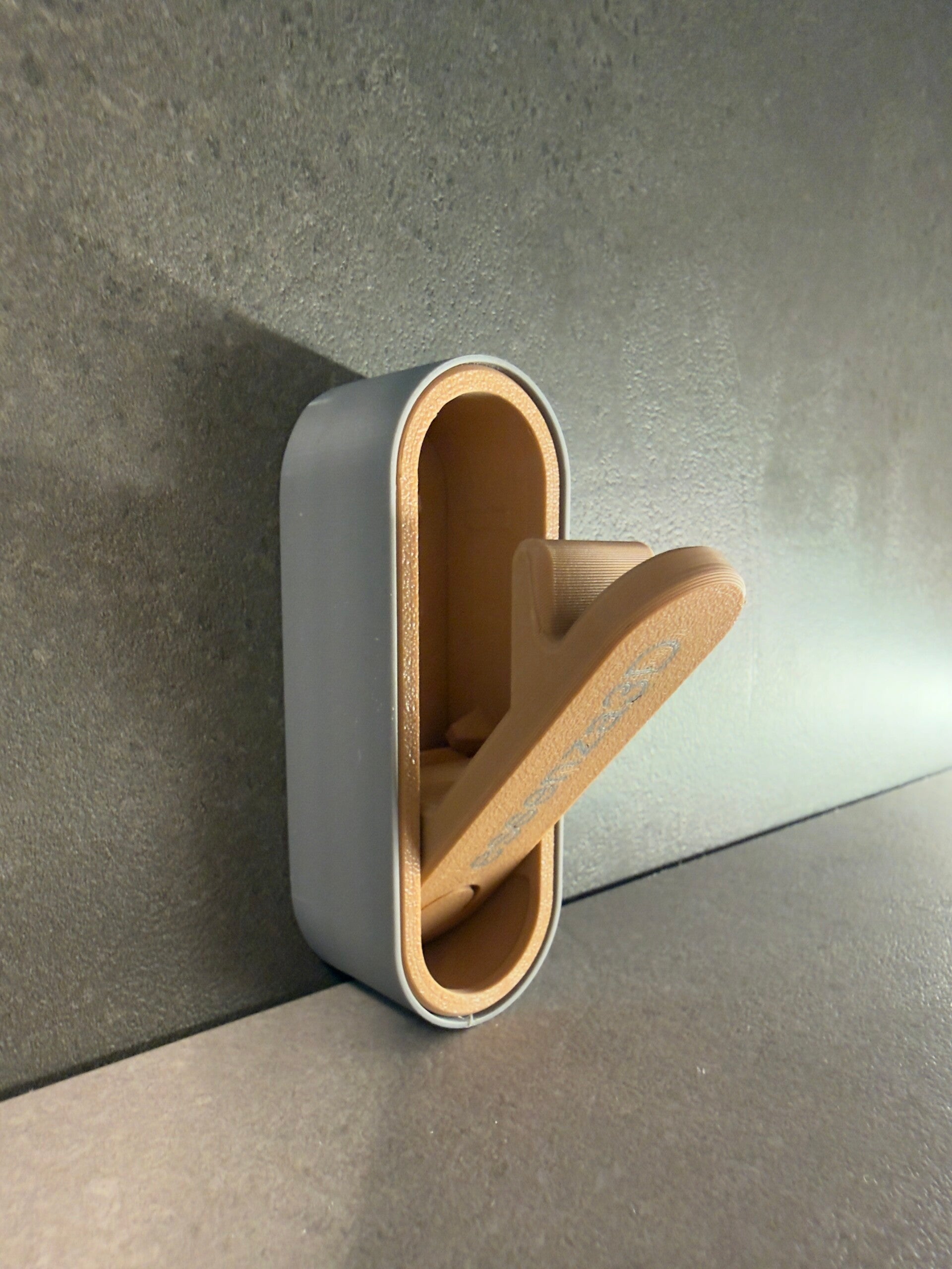 Gancio appendiabiti con meccanismo di apertura e chiusura.