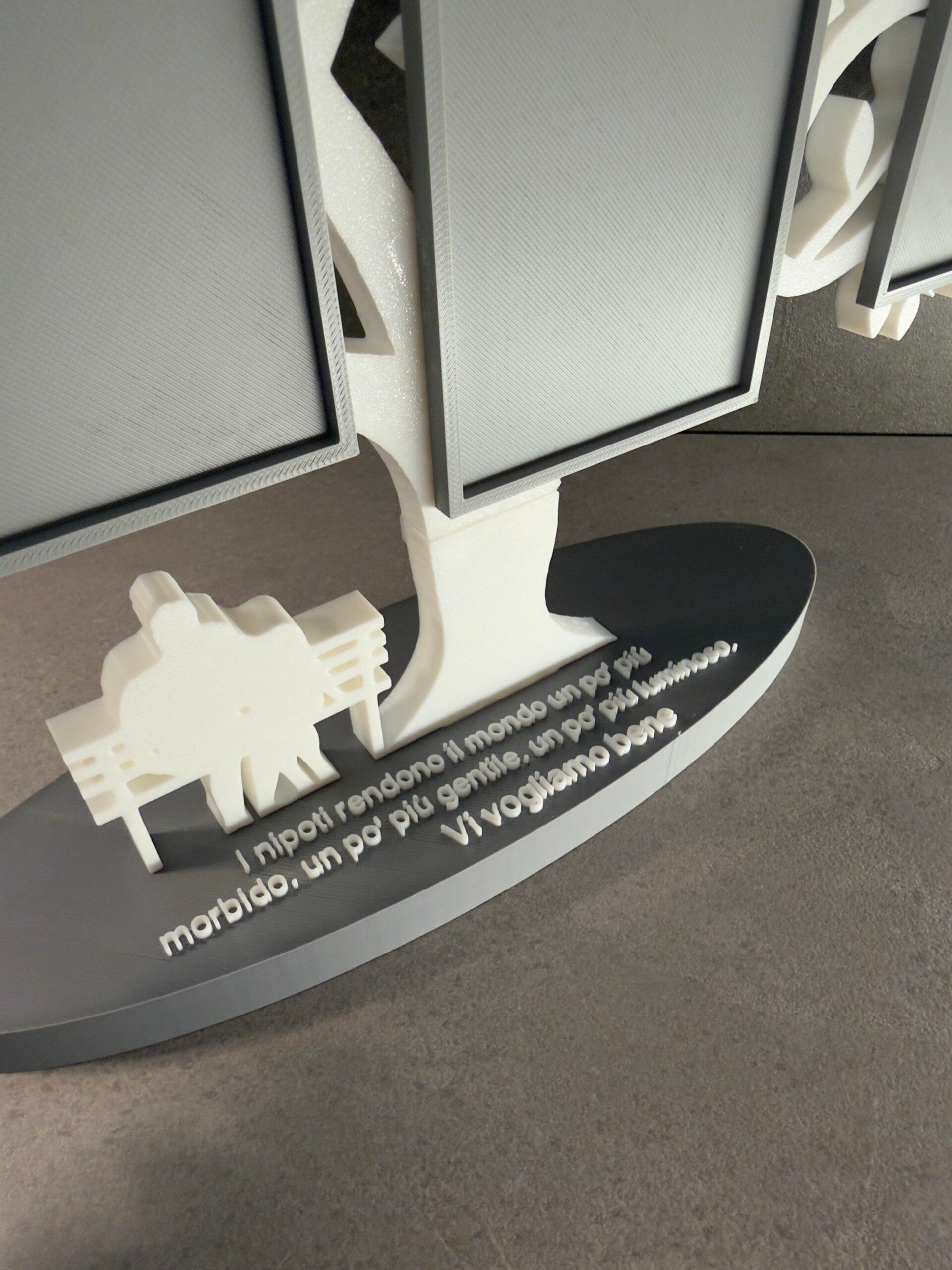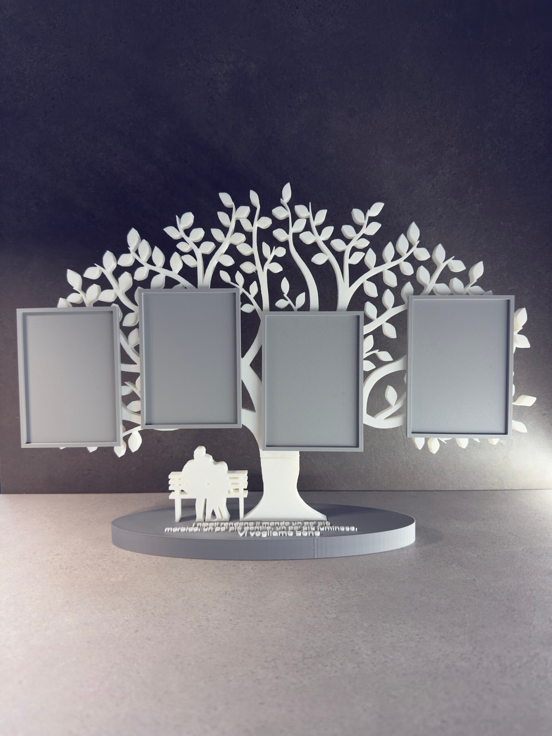 Totalmente personalizzabile, inserisci la frase, e se vuoi, carica anche le foto che verranno applicate all'interno delle cornici.